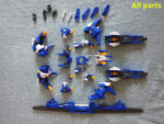 Las piezas están fundidas en color y obtendrás un resultado sorprendente simplemente montando el modelo. Está hecho para ser completamente posable y al mismo tiempo reducir el número de piezas. ¡Las piezas también se pueden quitar fácilmente de las puertas sin necesidad de pinzas! Este robot está equipado con puntos duros en varios lugares para ayudar en la personalización. ¡Los refuerzos incluidos también se pueden colocar en brazos y piernas!