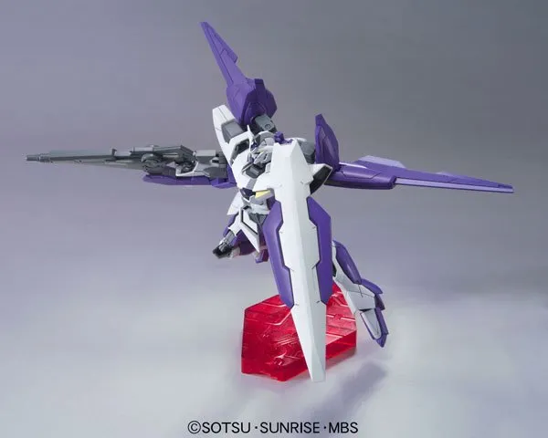¡Aquí, en la gloria de la escala 1/144, se encuentra el Gundam 1.5 de Leif Recitativo! Para un HG, Bandai ha utilizado una cantidad generosa de tapas de polímero en el diseño de este kit y el resultado es uno de los HG más articulados de la historia. El 1.5 se transforma entre el modo de espera, el modo de ataque, el modo de vuelo, el modo de cañón Alvaaron y el modo de alta velocidad con unos pocos cambios simples gracias a las juntas de unión de diseño único en su parte posterior. Viene equipado con su GN Beam Saber, GN Shield, Binder Rifle, GN Buster Rifle y Alvaaron Cannon. También se incluyen pegatinas de marcado.