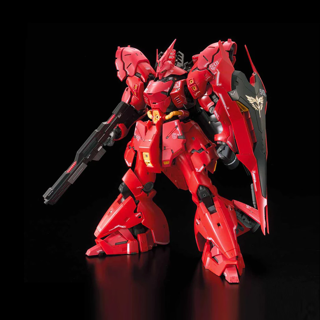 ¡Sazabi, uno de los mobile souits personalizados más emblemáticos del cometa rojo, Char Aznable, cobra vida en el formato 1/144 Real Grade! De la película “Mobile Suit Gundam Char’s Counterattack”, este gran mobile suit rojo presenta detalles complejos y trucos que le permiten realizar una amplia variedad de poses dinámicas.